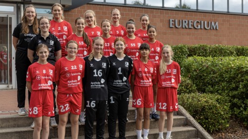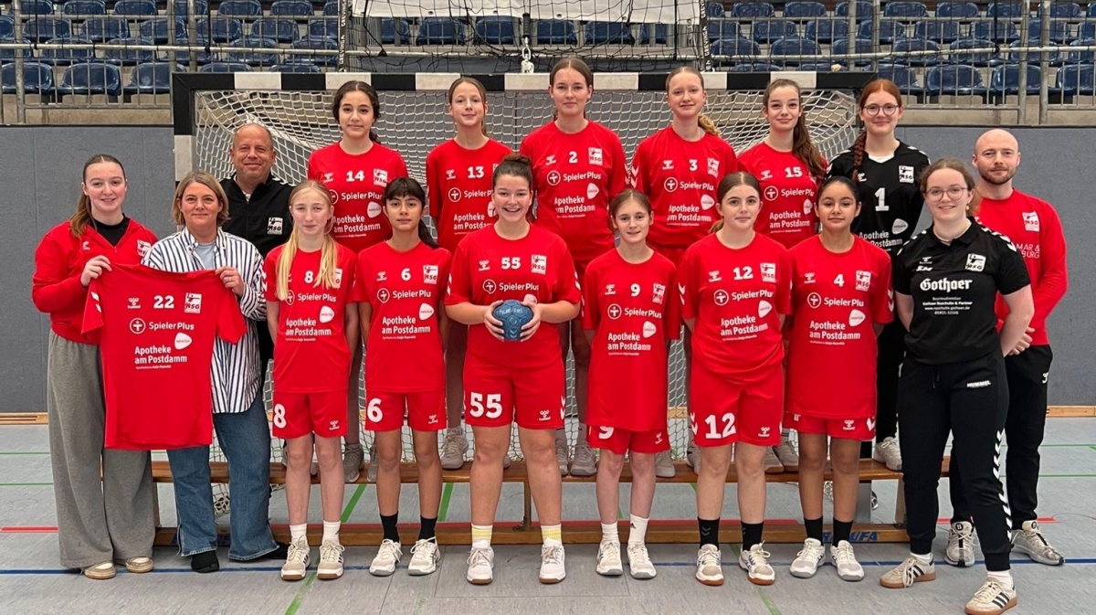 Trikotübergabe der weiblichen C2 mit der Apotheke am Postdamm und Dirk Becker